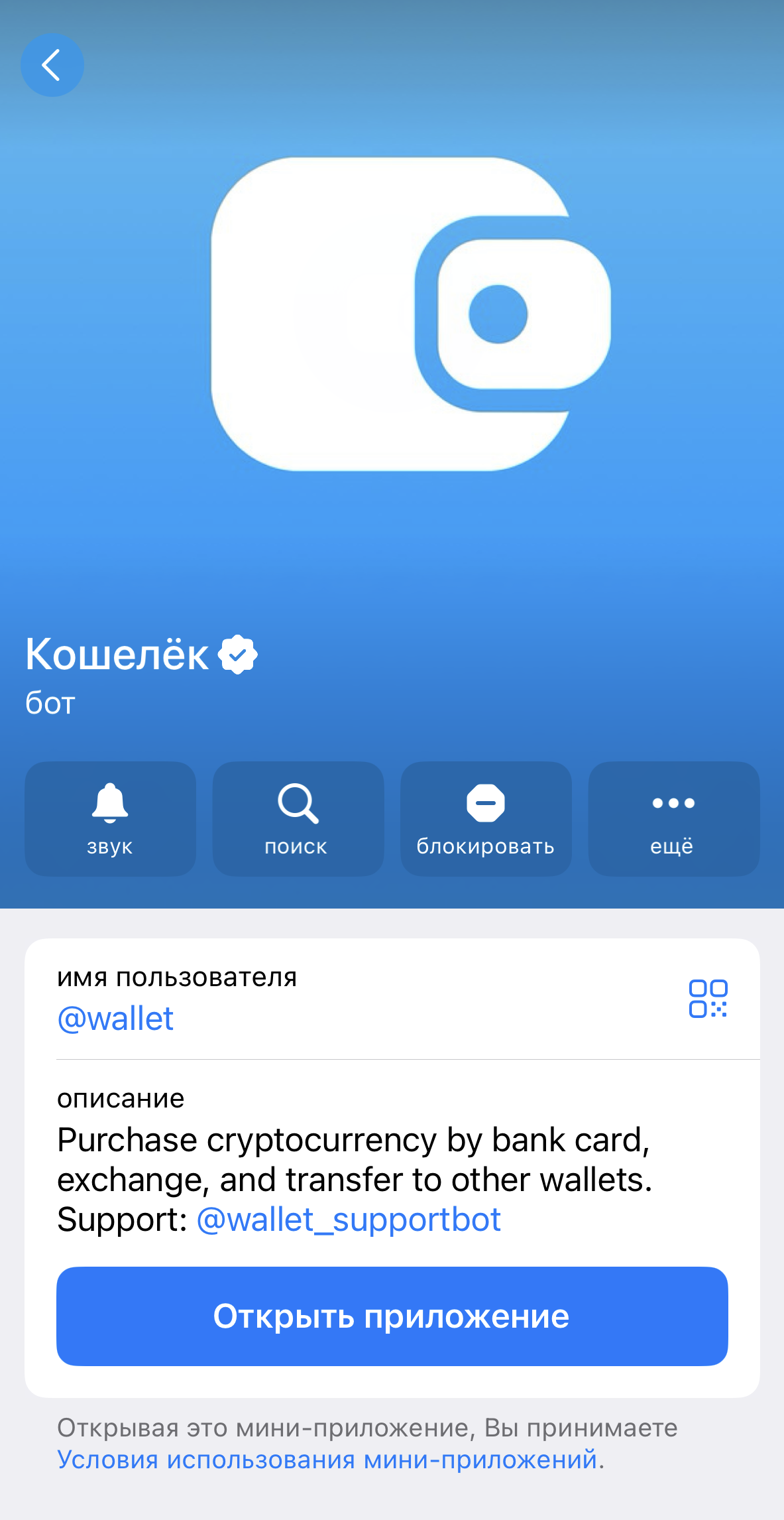 Чтобы воспользоваться платежной системой, перейдите в бот @Wallet в Telegram. Далее вам нужно авторизоваться через Wallet-аккаунт. Если у вас нет кошелька — создайте его.&#x20;